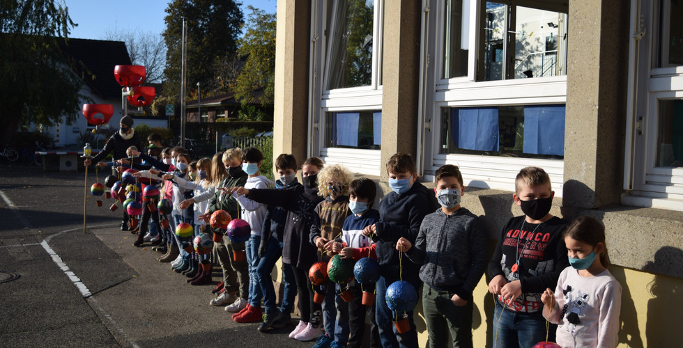 Obwohl die Martinsumzüge alle abgesagt werden mussten, hat sich zur Freude der Kinder St. Martin auf den Weg an die Regenbogenschule gemacht. Stolz präsentierten die Kinder ihm ihre selbstgebastelten Martinslaternen. "Im nächsten Jahr können wir hoffentlich wieder normal feiern, aber wenn nicht, ist es auch so wie heute schön", so St. Martin. Im Anschluss gab es für jedes Kind einen Weckmann, welcher sofort verputzt wurde.
